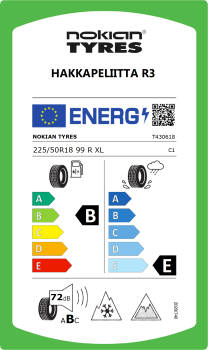 Nordic non-studded Nokian Tyres Hakkapeliitta R3 winter tyre has the perfect balance of safety and comfort. It adapts to all weather variations offering relentless grip and making driving controlled, precise and enjoyable. Nokian Tyres Hakkapeliitta R3 is the perfect choice for drivers who value first-class safety, unique driving comfort and greener driving.