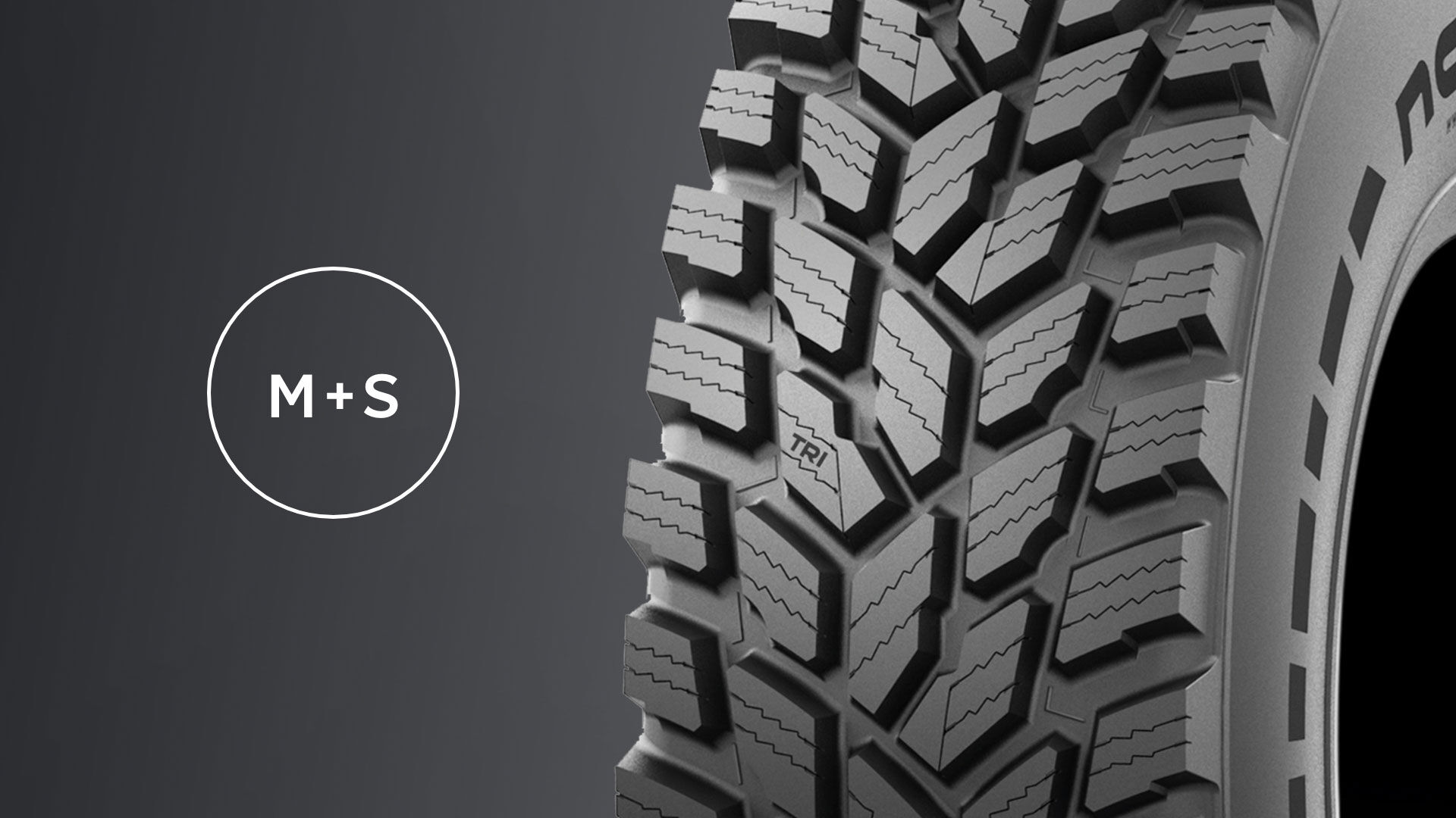 The M+S marking stands for “mud and snow”, indicating that the tires are designed to perform well in challenging conditions, such as mud and snow. In other words, the mud and snow marking reflects the tire's capability to perform on low-traction surfaces which are common during the winter and in muddy terrains. Tires intended for winter in particular should have the M+S marking to prove they can perform in demanding winter conditions. Mud and snow tires by Nokian Tyres are reliable in winter operating conditions thanks to certain design choices and tire innovation, including specialized tire compounds, a winter-proof tire casing, a larger tread pattern contact area, and tire tread patterns made for winter conditions.