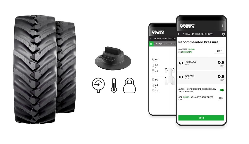 Intuitu™ 2.0 is designed exclusively for Nokian Tyres Soil King VF tires, allowing farmers and contractors to fully unlock the benefits of these premium tires. Soil King VF tires are made for low-pressure operation, but without the necessary information, users often hesitate to use the lowest possible pressure. As a result, they miss out on improved power transfer, reduced fuel consumption, minimized soil compaction, and extended tire life. Intuitu™ 2.0 helps users to make informed decisions in every situation, improving efficiency, boosting productivity and protecting soil health for better crop yields over time.